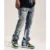 Pantalones Vaqueros de Mezclilla para Hombre OEM de Marca Privada Azul con Parches Acampanados y Apilados con Efecto de Pintura, Disponibles para Drop Shipping y en Stock